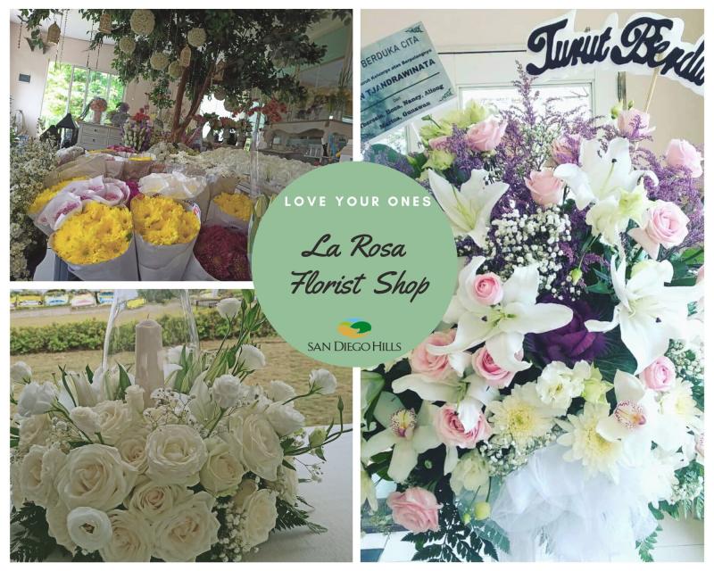 La Rosa Florist & Gift Shop merupakan salah satu fasilitas yang disediakan San Diego Hills, yang menyediakan bunga segar, baik untuk bungan tabur maupun bunga rangkaian, sehingga keluarga yang mau berziarah atau menyampaikan ucapan dukacita berupa karangan bunga maupun bungan papan, bisa mampir atau memesan dengan menghubungi ke nomor 0819 33008680